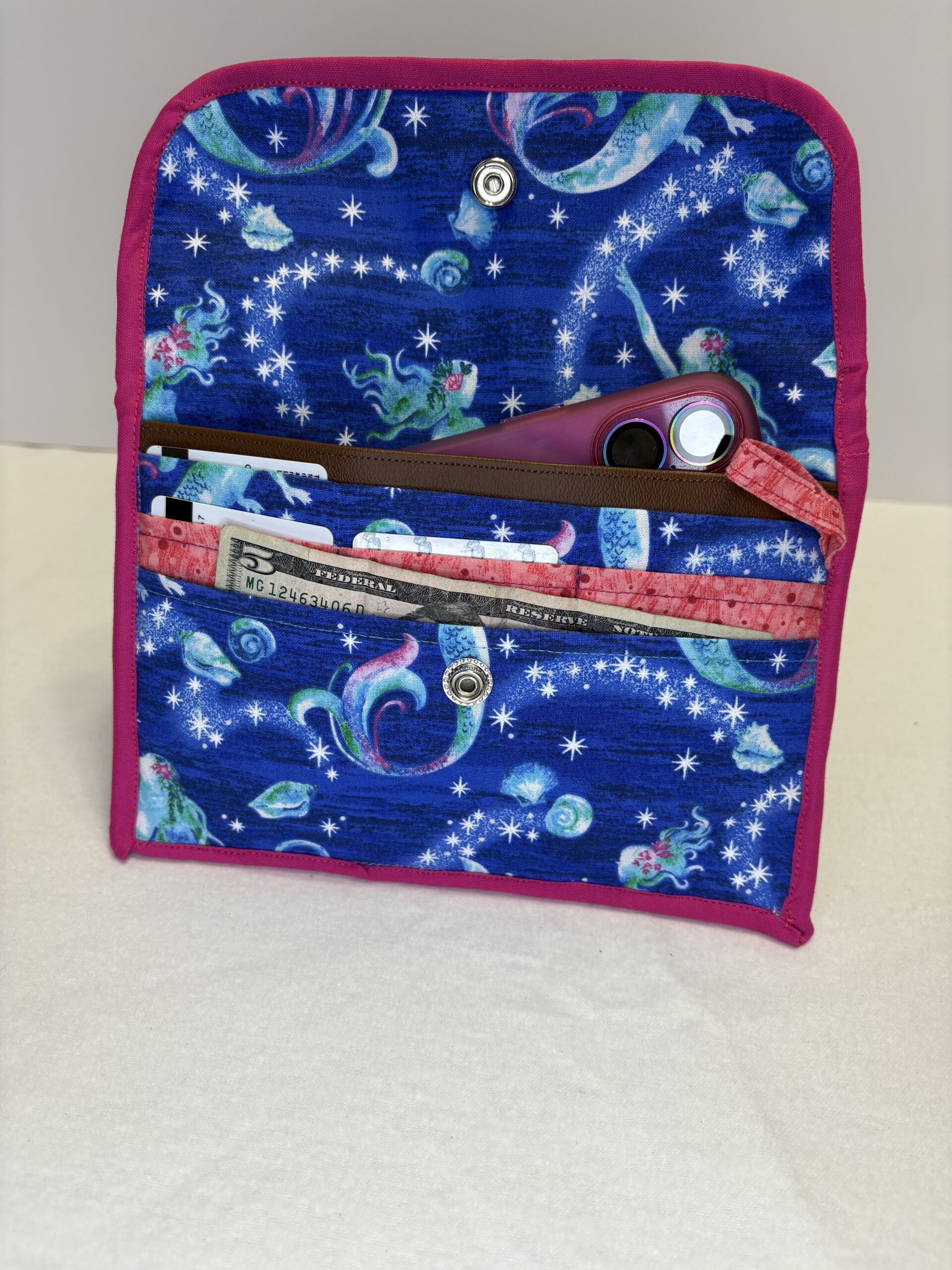 Upgrade your style and organization with our chic phone wallet wristlet, designed to keep essentials secure and within easy reach. Crafted with high-quality, customizable faux leather and vibrant multi-patterned fabric, this wristlet exudes effortless sophistication while showing off your unique flair.